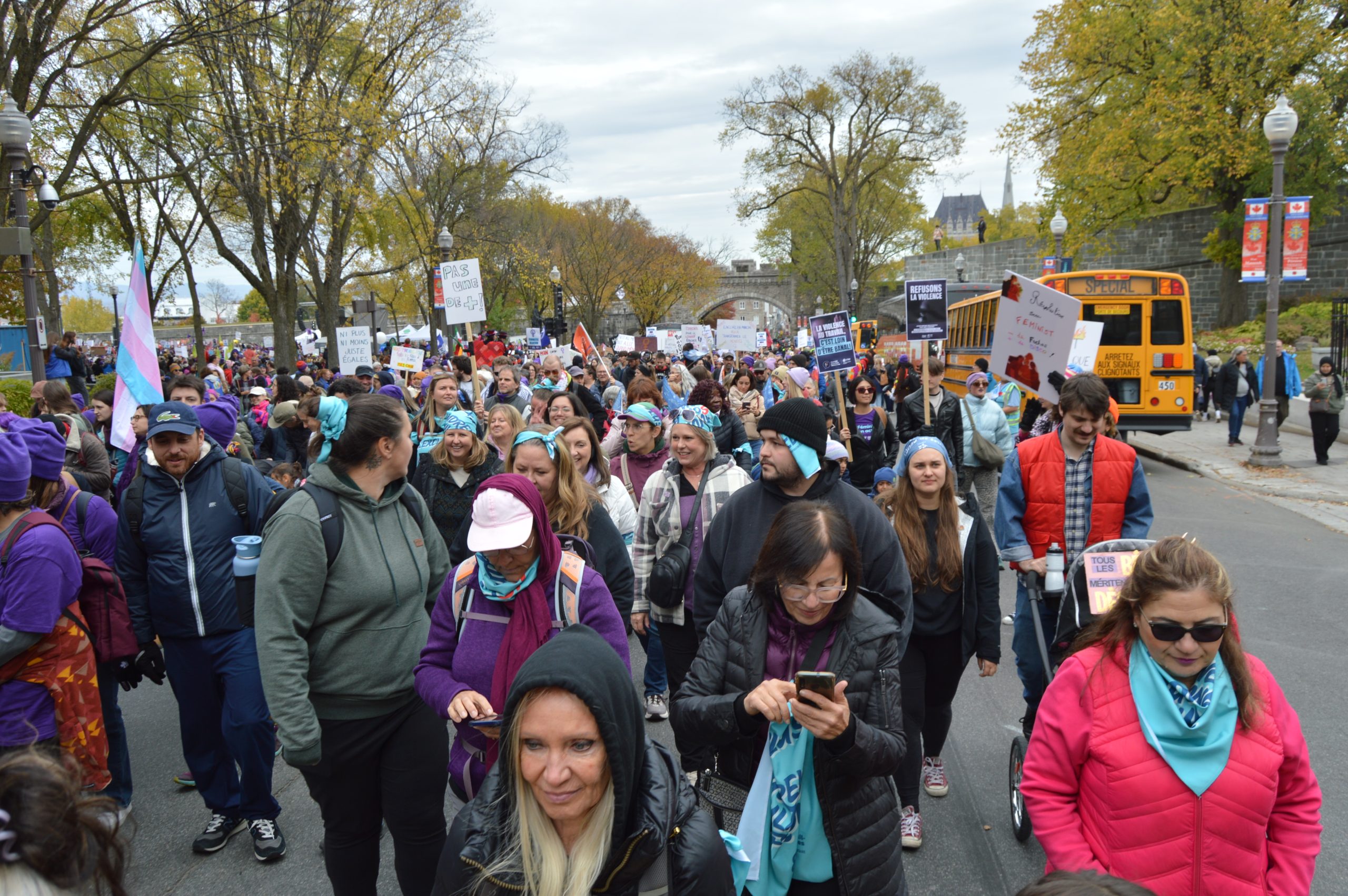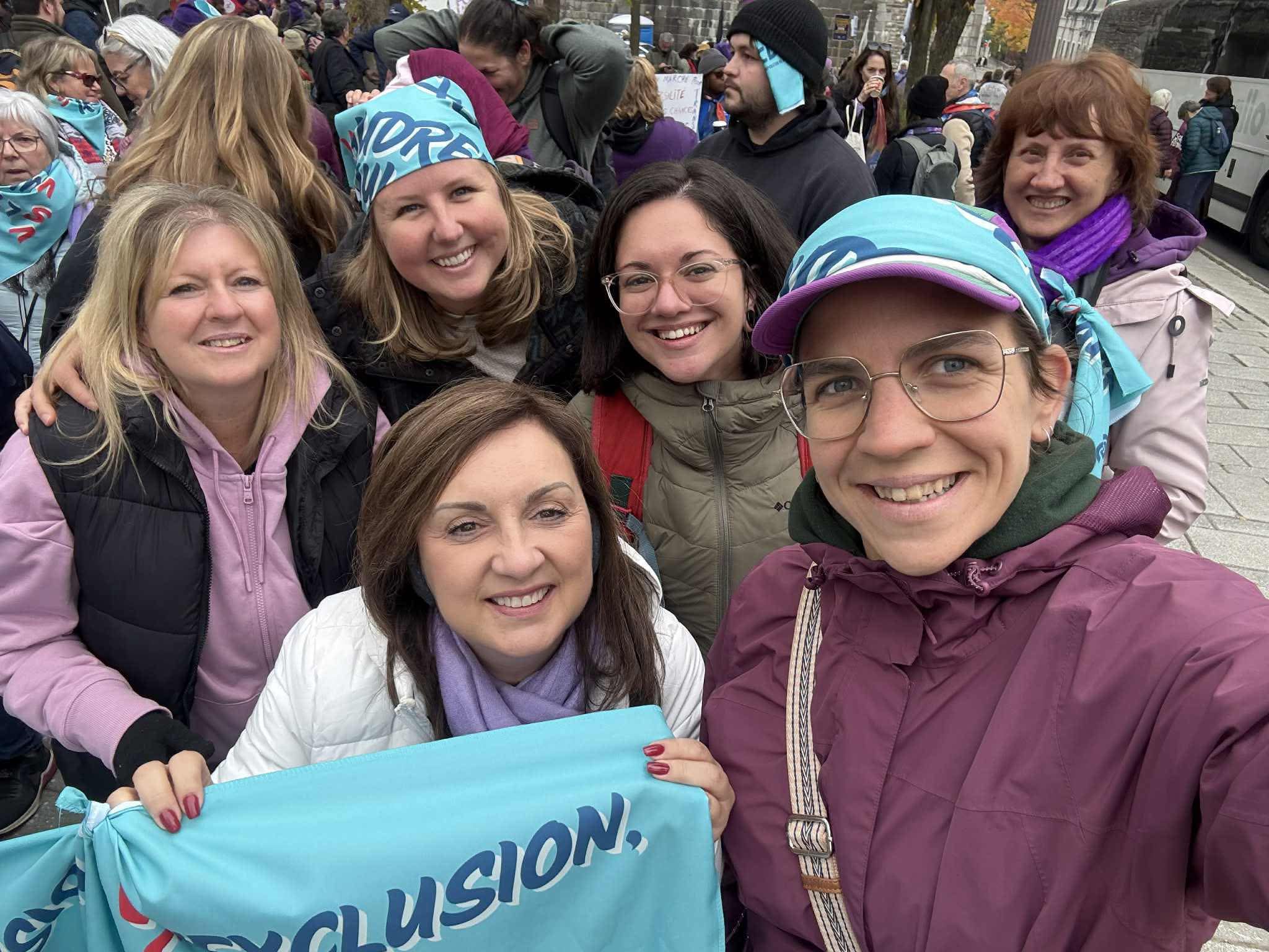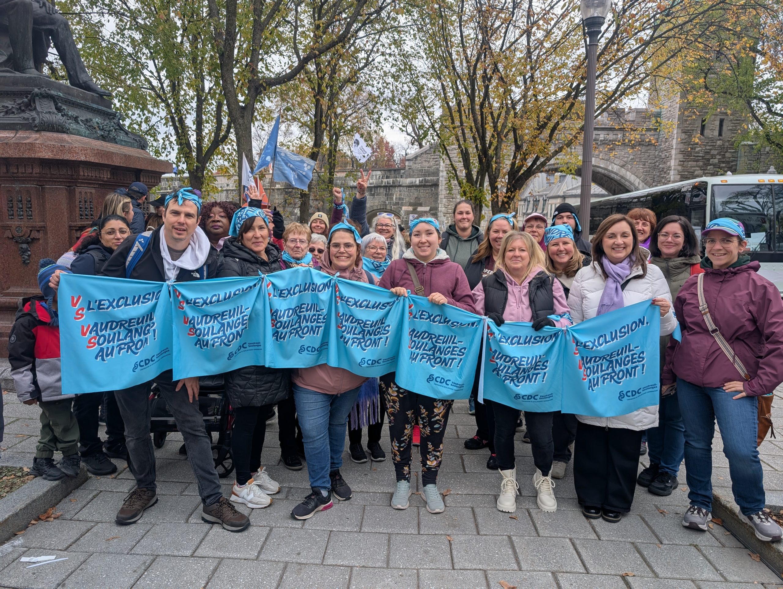 Vaudreuil-Soulanges, le 20 octobre 2025 – Ce samedi 18 octobre, 45 participant·e·s issu·e·s de 10 organismes communautaires de Vaudreuil-Soulanges ont uni leur voix à celle de plus de 16 000 personnes lors de la Marche mondiale des femmes tenue à Québec. La CDC-VS y a porté fièrement des revendications claires pour un monde plus juste, égalitaire et inclusif.